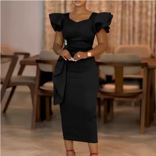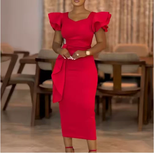 New Wholesale Fashion Sexy Solid Color Casual Slim Fit Pencil Skirt Elegant Plus Size Dress Women's Clothing